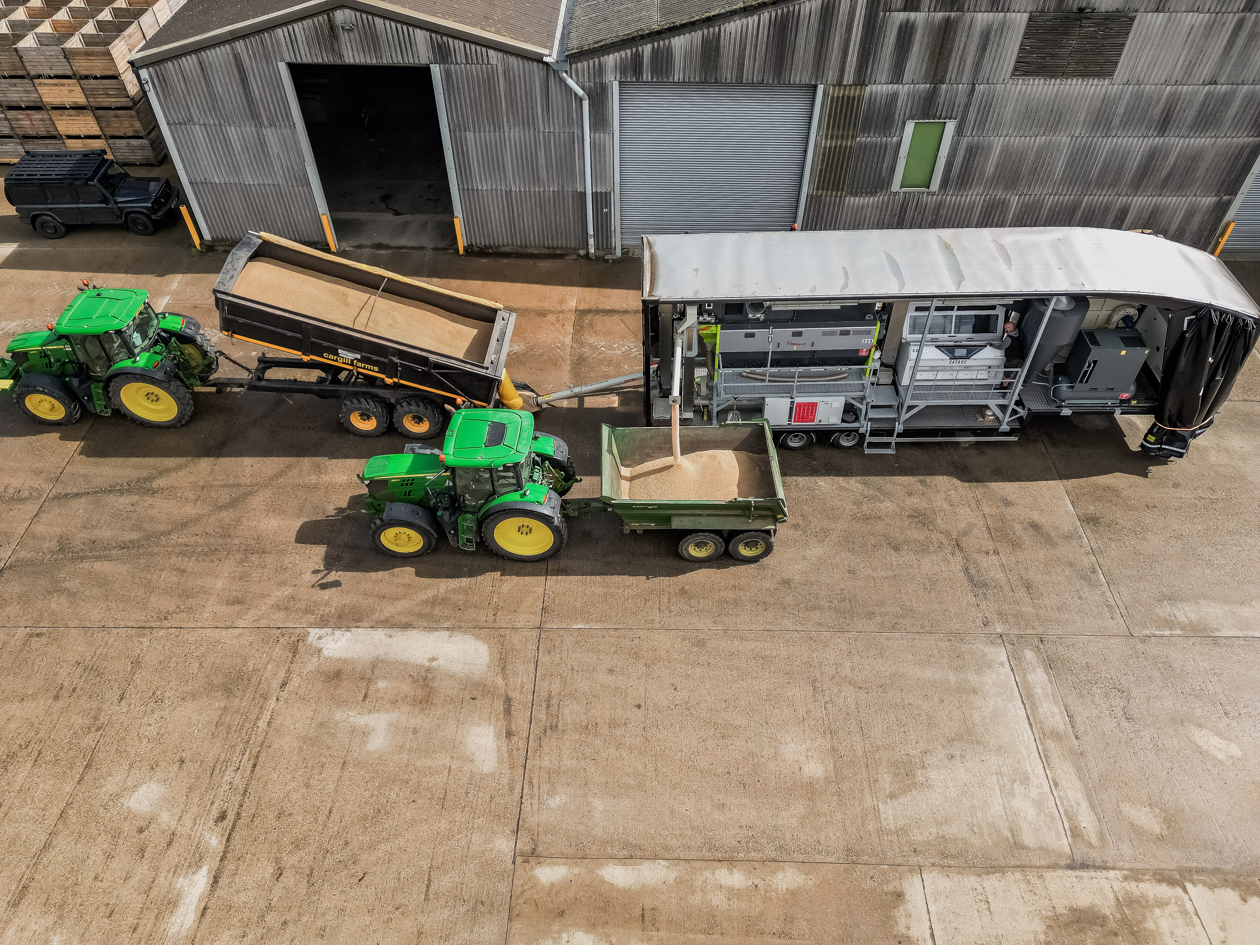 This unit is available for hire on farm with an operator, it is a state-of-the-art mobile grain cleaning unit with a colour sorter, rotary screener and aspirator.